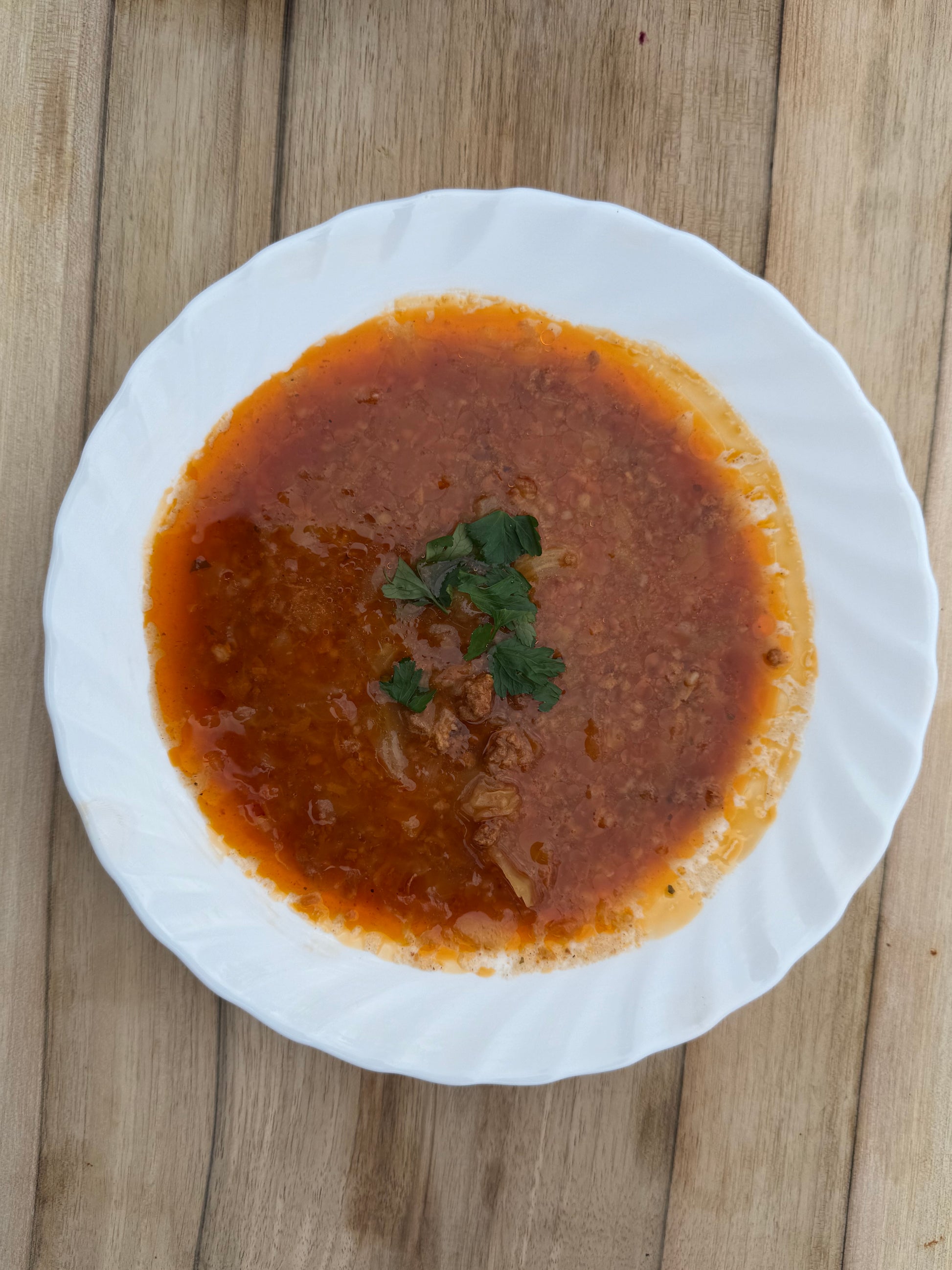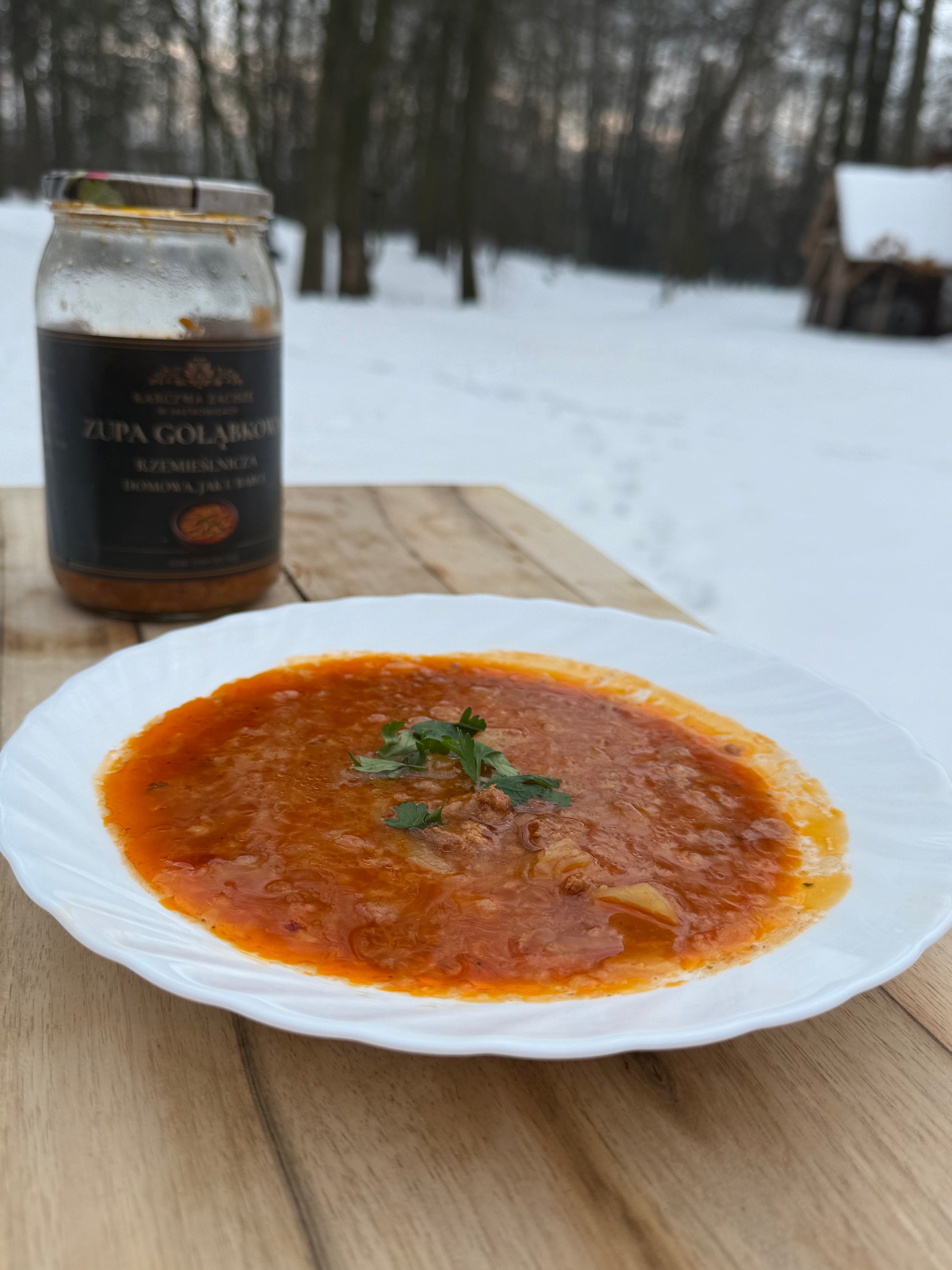 Gotowana powoli, na mięsie wieprzowym, z dodatkiem kapusty, ryżu i aromatycznego sosu pomidorowego. Bez konserwantów, bez chemii – prawdziwa, swojska kuchnia.